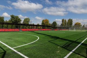 Раздевалки и душевые находятся рядом с полем, а освещение позволит проводить игры даже в позднее время.