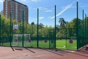 Мини-футбольное поле размером 40х20 с искусственным покрытием.