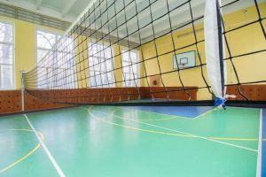 Универсальный зал размером 29 м х 17 м; высота потолков - 9 м, пол - спортивный линолеум. для игры в футбол,волейбол, баскетбол.