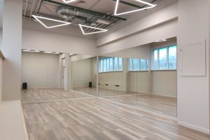 Разноуровневое освещение, неоновая подсветка, большая зеркальная стена. Идеален для тренировок и репетиций, йоги, пилатеса, масстер-классов и съемок контента.